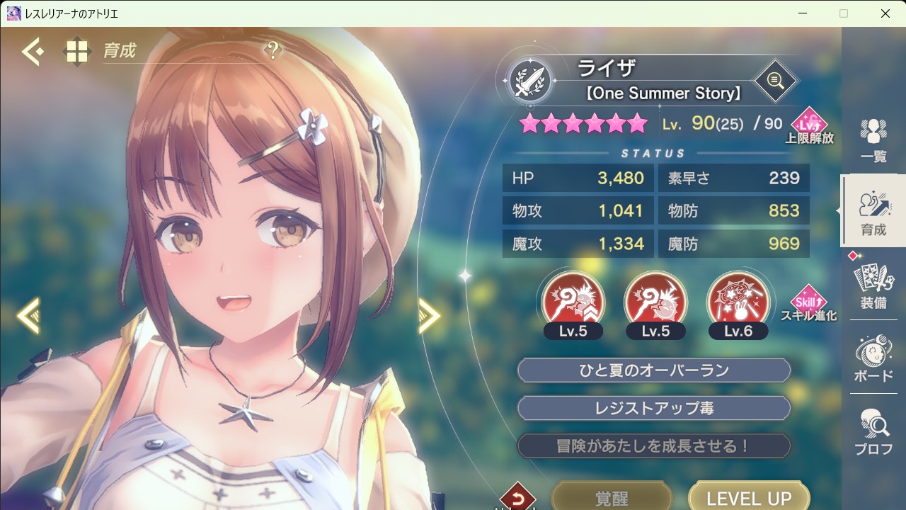キャラのレベル上限や能力値、スキルレベル上昇等を行えるもの。キャラ毎のボード画面で確認できる。