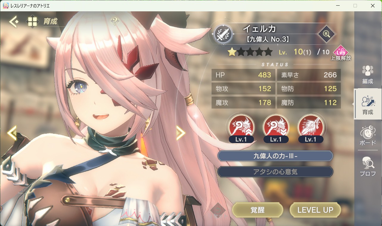キャラと違い、解放ランクを上げてもレアリティは上昇しない。
